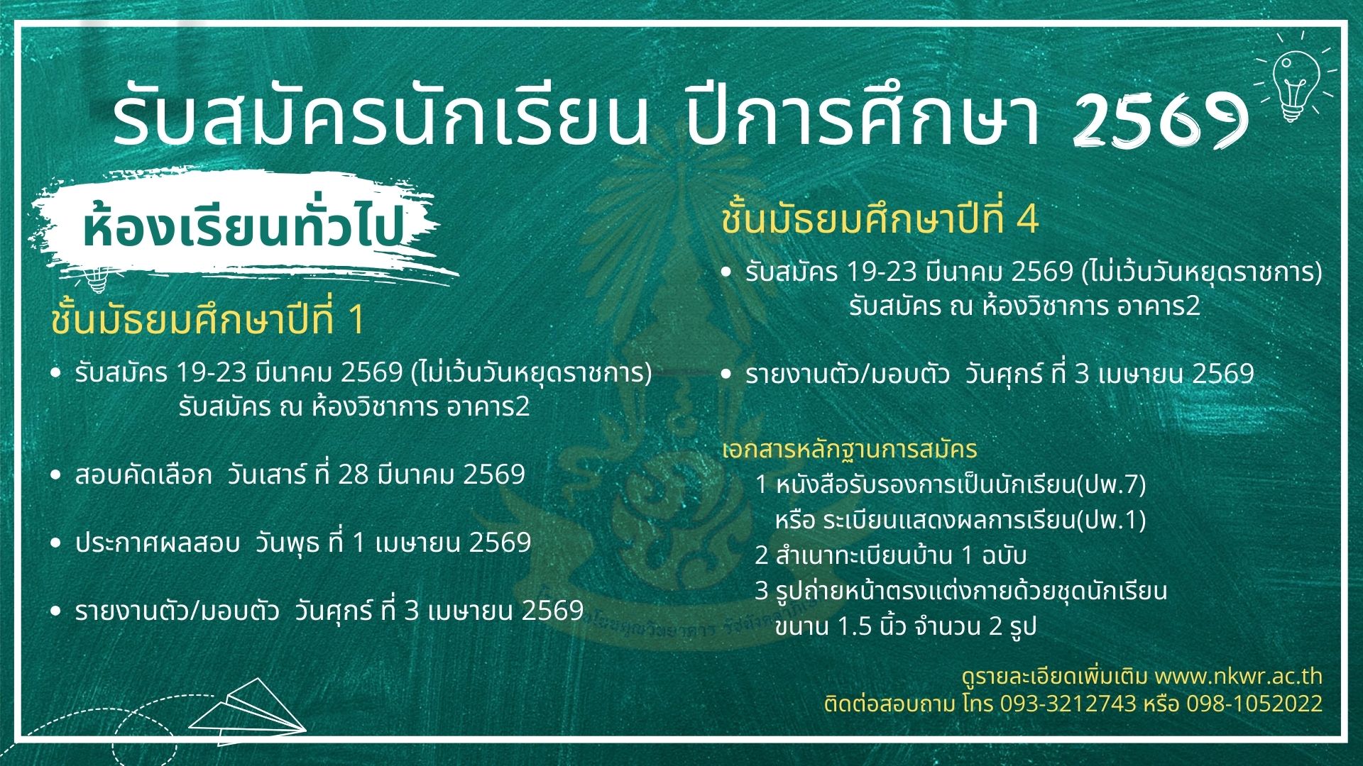 ( 24 มี.ค. 69 ) - ประกาศ โรงเรียนโนนคูณวิทยาคาร รัชมังคลาภิเษก รับสมัครนักเรียน รอบห้องเรียนทั่วไป